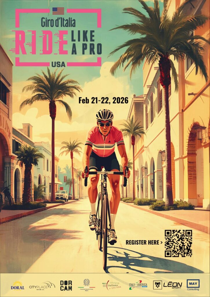 Organizzato da LJ Cycling Enterprises, MAY Consulting e DRC Sports, l’evento trasformerà CityPlace Doral in un villaggio a tema italiano ricco di esperienze ispirate al Giro.