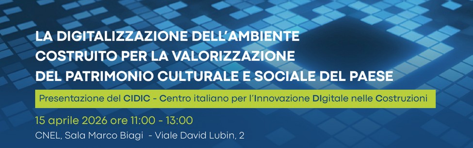 È il tema al centro dell’evento La digitalizzazione dell’ambiente costruito per la valorizzazione del patrimonio culturale e sociale del Paese organizzato dal CNEL-Consiglio Nazionale dell’Economia e del Lavoro, dall’Agenzia del Demanio e dal Centro italiano per l’Innovazione Digitale nelle Costruzioni, in programma domani mercoledì 15 aprile 2026 a Roma, dalle ore 11:00 alle ore 13:00 italiane nella sede del CNEL, viale David Lubin 2, in Sala Marco Biagi.